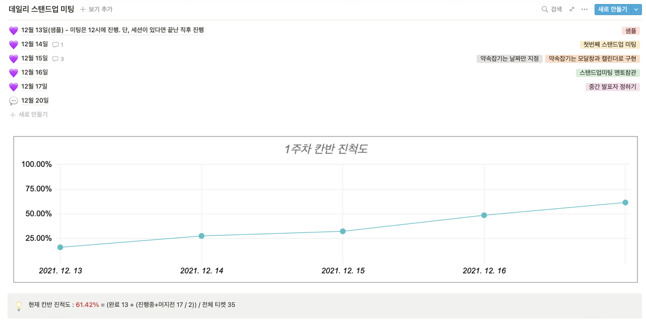 - 칸반 티켓 수를 기준으로 진척도를 숫자로 확인할 수 있도록 할 것