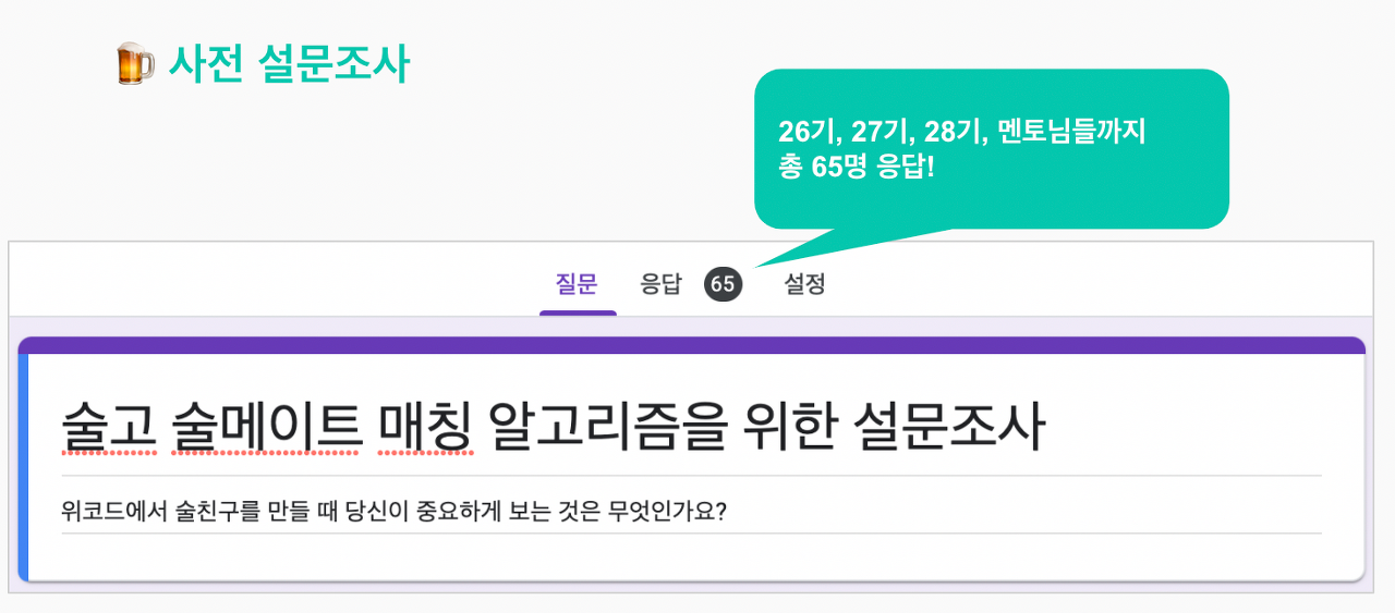 이 설문에 무려 65명이나 참여해주었다ㅜㅜ (도와준 26기 찬규 님, 28기 찬주님 감사합니다.)