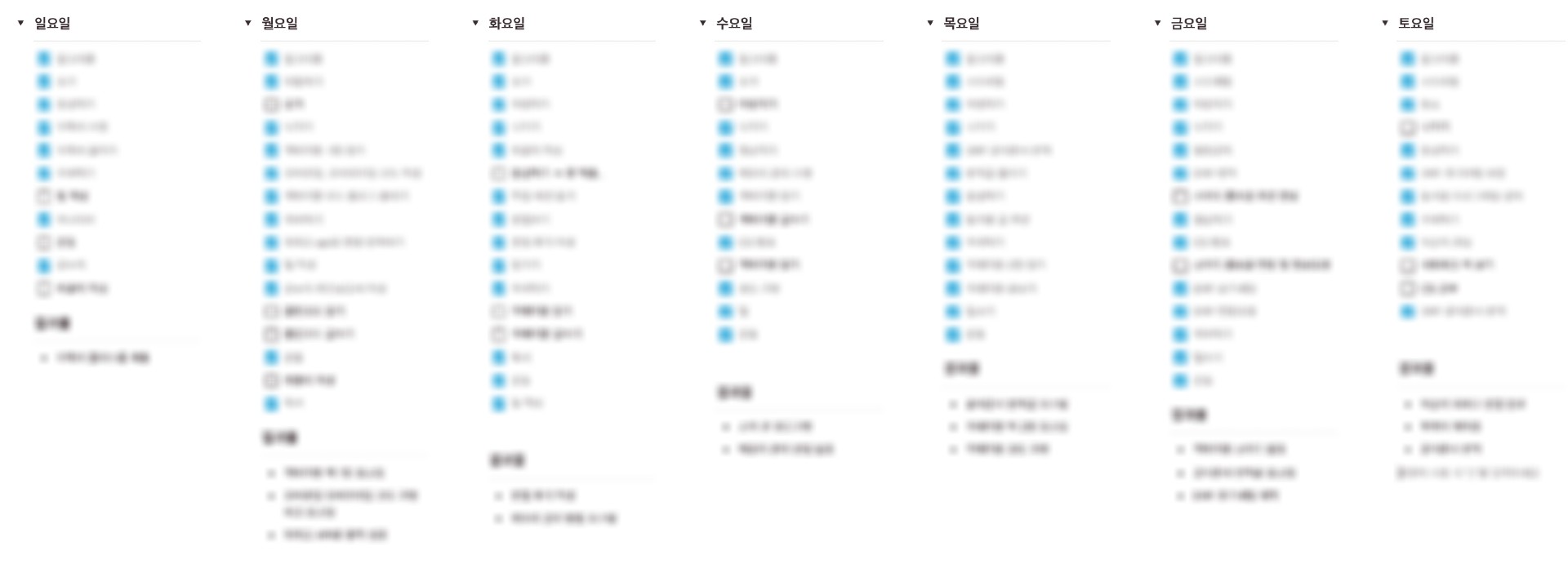 이와 유사하게 데일리 체크리스트 또한 카테고리를 나누고 '체크하는 것'과 '체크하지 못하는 것'들을 측정해보면 어떨까?