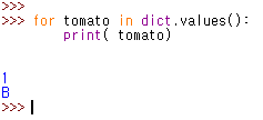 - 딕셔너리이름.values() >>> 값만 출력하는 메서드