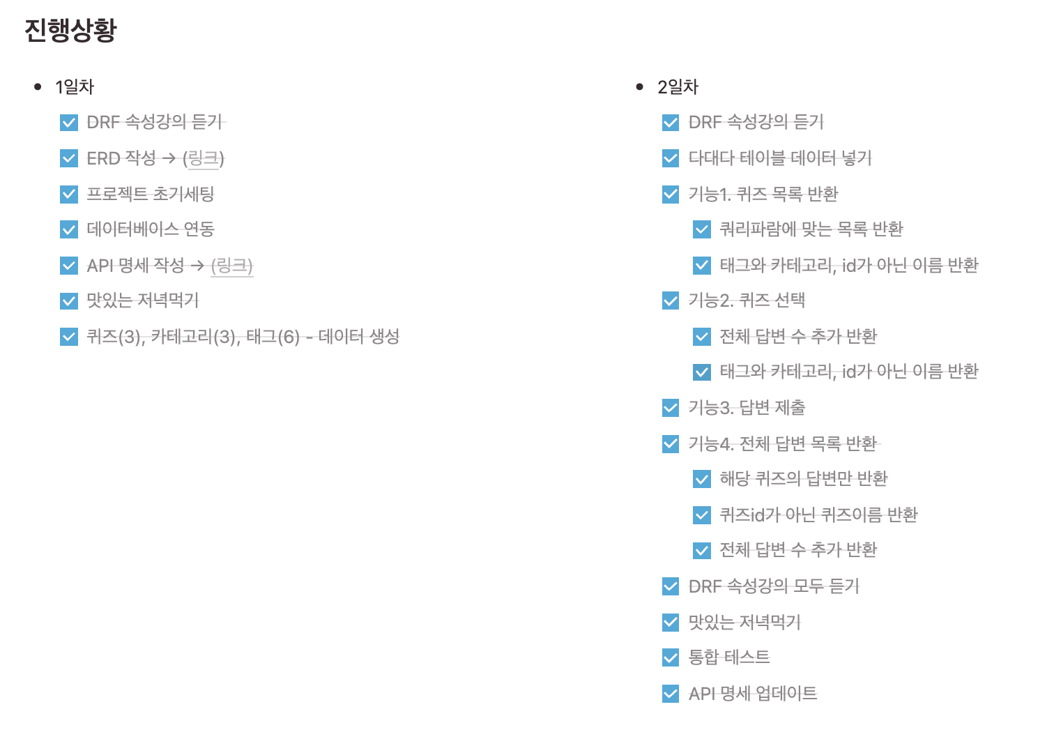 - DRF 강의내용을 실시간으로 내 프로젝트에 응용함으로써 빠르게 감을 익힐 수 있었다.