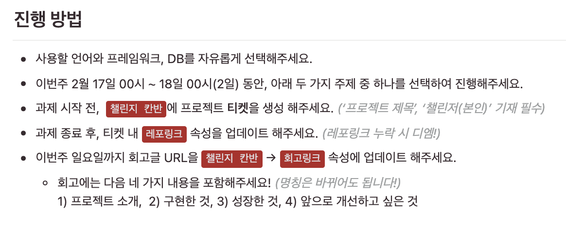 이번 챌린지에서 특히 중요시 여겼던 것은 '회고'였는데, 회고를 통해 자신의 수준을 파악하고 다음 액션에 대한 방향성을 찾길 바랐다.