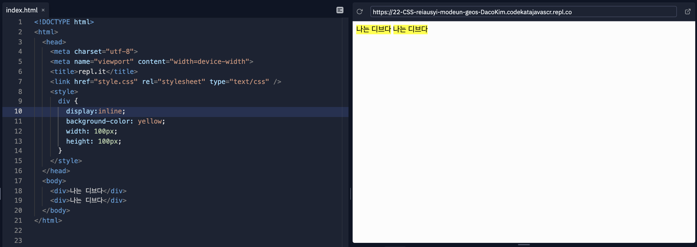 하지만 그런 div 에게 display 속성으로 inline을 준다면..!!