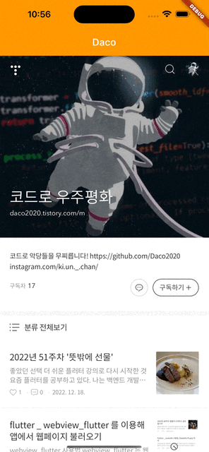 | flutter _ webview_flutter 를 이용해 앱에서 웹페이지 불러오기 (2) | 2022.12.17 |