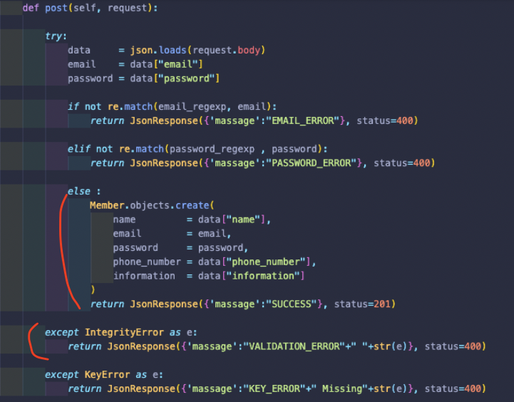 return JsonResponse({'massage':"KEY_ERROR"+" Missing"+str(e)}, status=400)