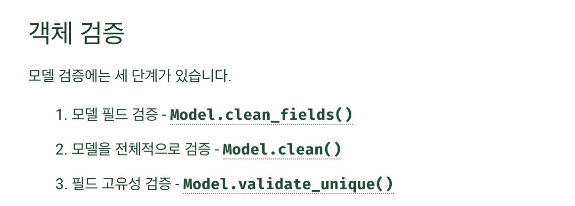 기존에는 한번에 create 하여 테이블에 데이터를 넣어주었는데, 이번에는 데이터를 member라는 변수에 넣고 full_clean()을 통해 유효성 검사를 수행하도록 수정했다. 참고 링크