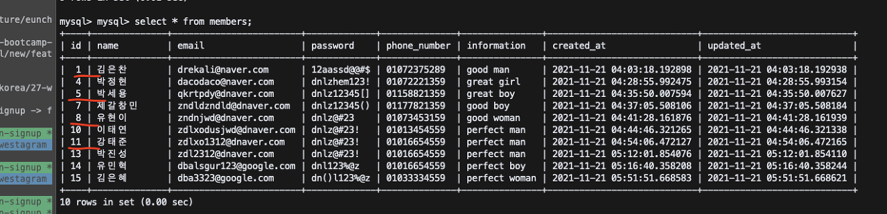 - 위에서 언급한 pk가 증가하는 문제는 아직 원인도 정확히 파악하지 못했다. 다만 추측하기로는 데이터 생성이 먼저 이루어지고 이메일 중복을 거친 후 유효하지 않으면 데이터가 다시 지워지기 때문에 발생한 문제가 아닐까 싶다. 이 부분에 대해서는 멘토님께 문의를 했는데 답을 받는다면 추가로 글에 기재하겠다.
