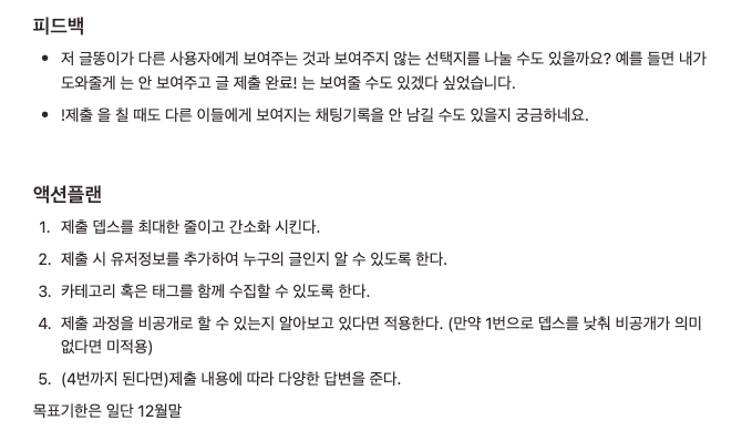 아래는 첫 번째 프로토타입(글똥이)을 녹화한 영상이다. 이 영상을 운영진분들께 공유하여 피드백을 요청했다.