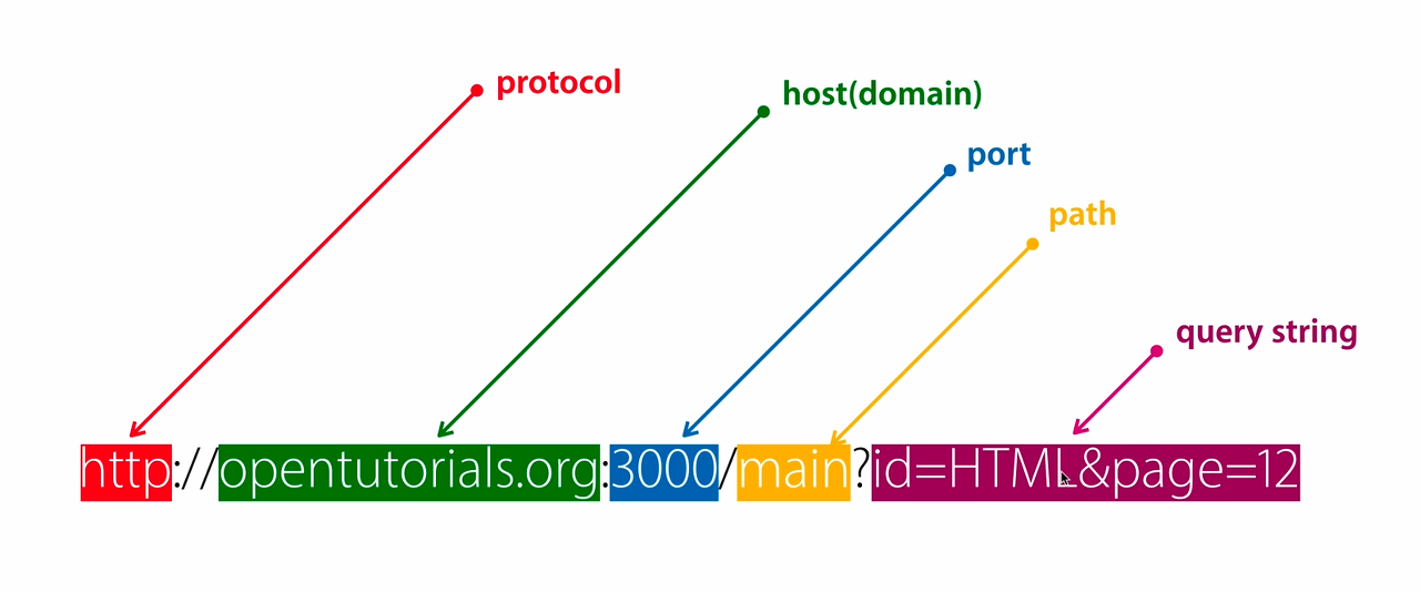 예를 들어 http://opentutorials.org:3000/main?id=HTML&page=12 라고 되어있는 주소가 있다.