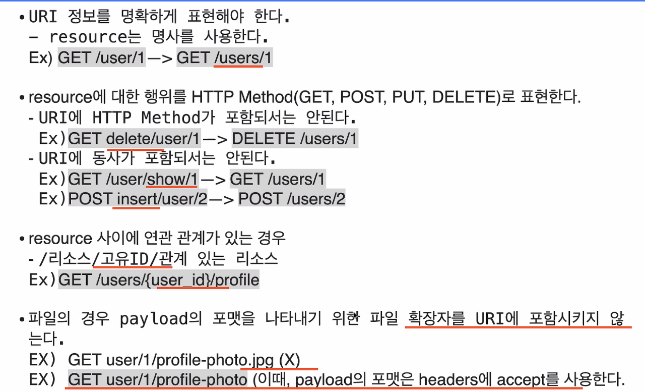 첫 번째, URI는 정보의 자원을 표현해야 한다.