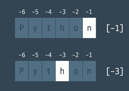 인덱스는 - 도 가능하다. - 는 0 없이 맨 끝이 -1부터 시작한다.