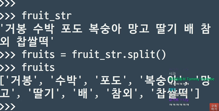 > 공백 뿐만 아니라 다른 구분자를 설정해 나눌수도 있음 ( split(,) 이렇게)