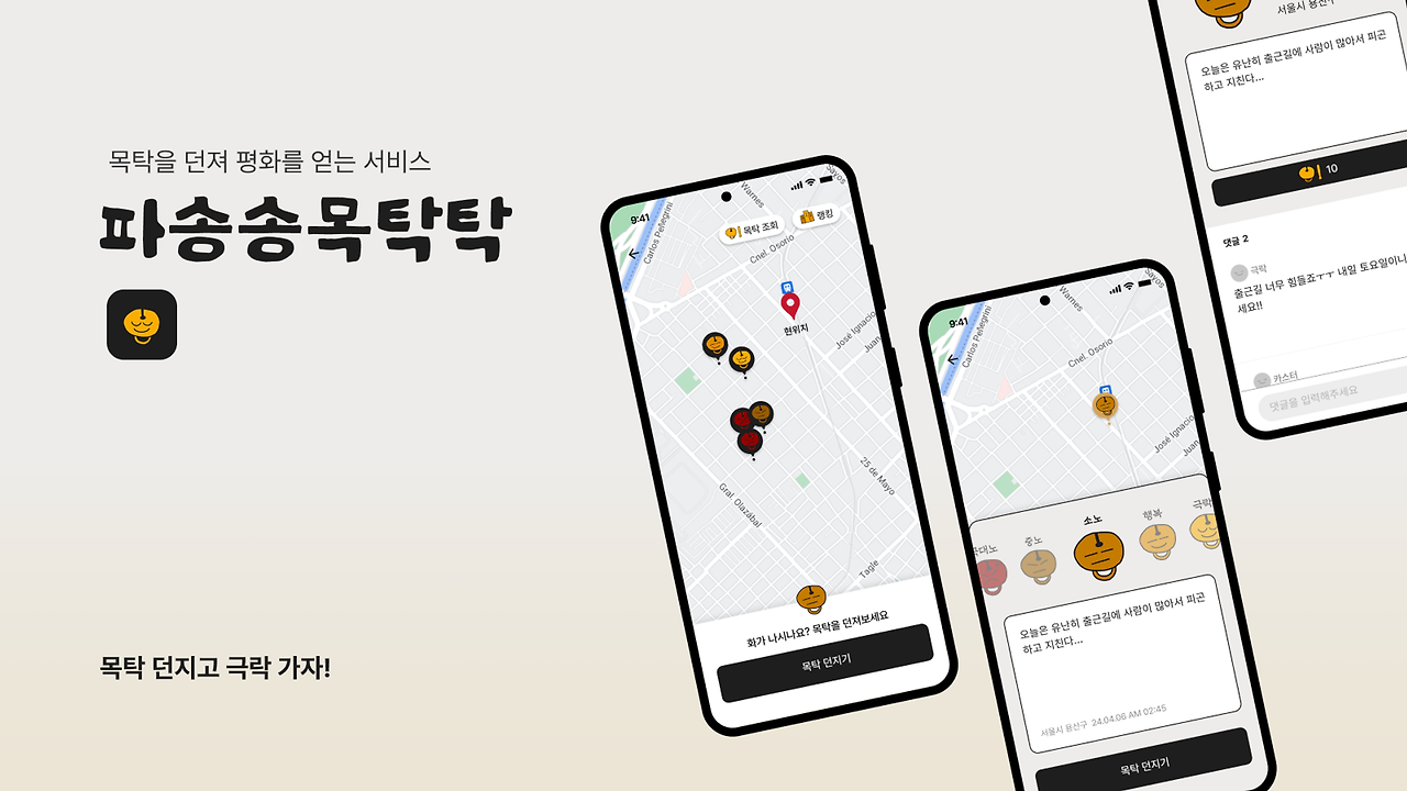특정 장소에서 느꼈던 나의 하루에 대한 기분을 목탁으로 남기는 '파송송목탁탁'