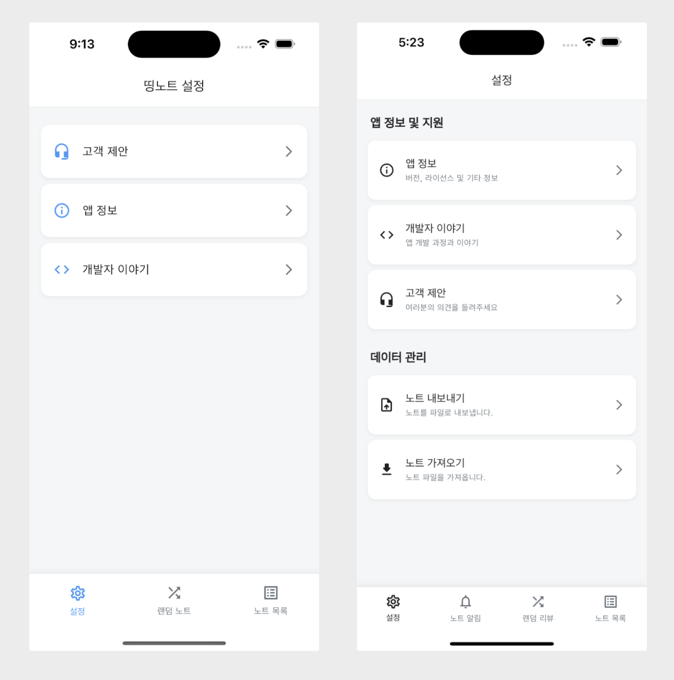 이번 글에서는 노트 내보내기와 가져오기 기능을 구현했습니다. 사용자는 이 기능을 통해 자신의 노트를 파일로 백업하거나 다른 기기로 옮겨 복원할 수 있습니다.
