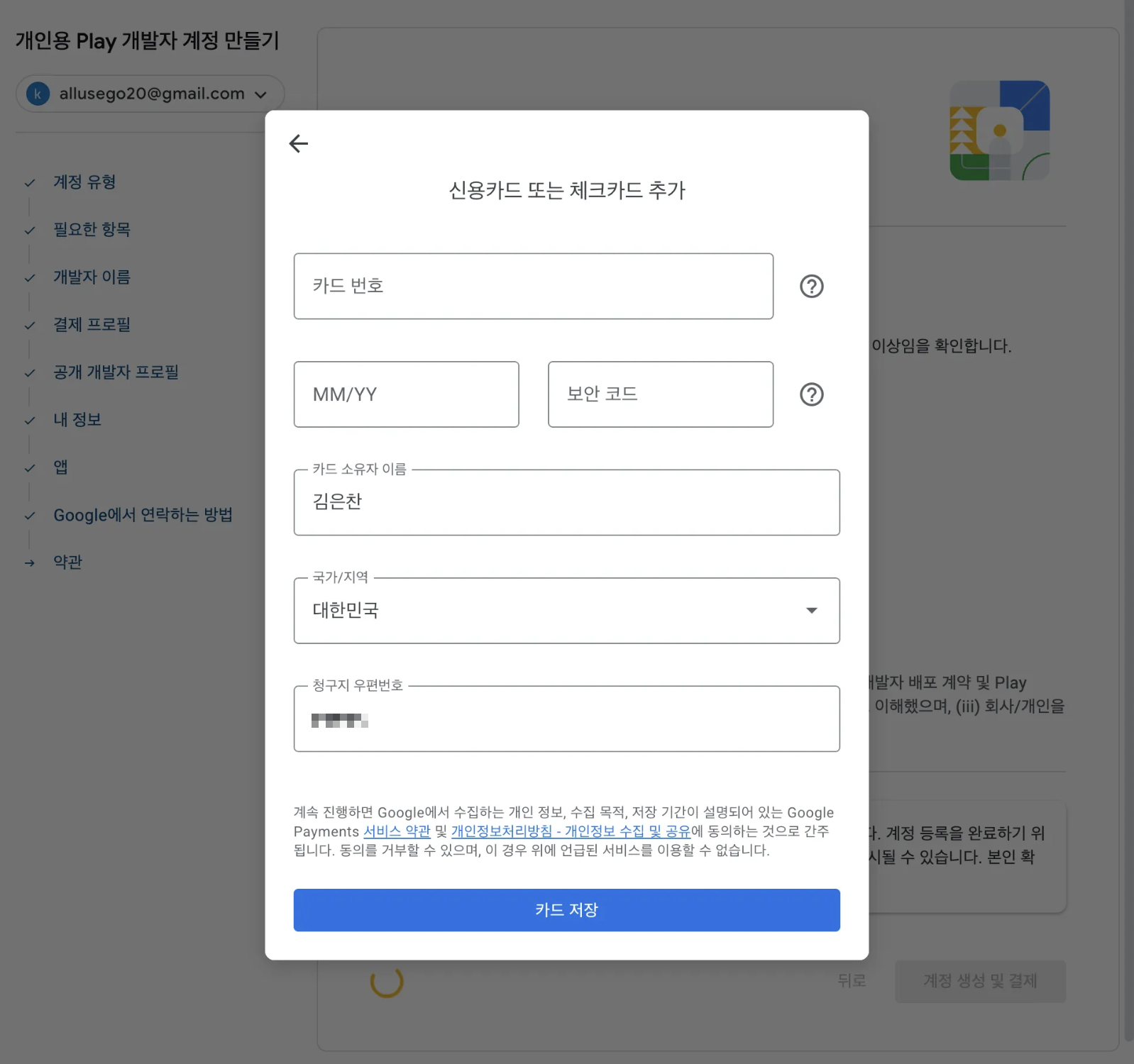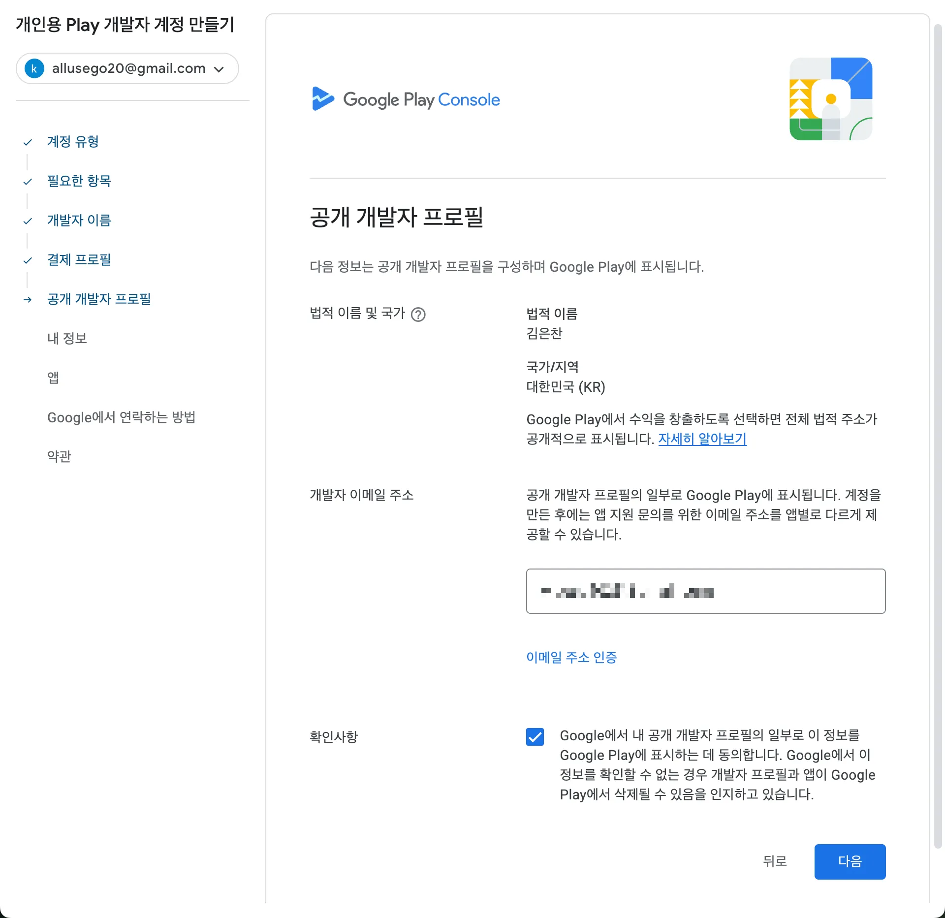 축하합니다! 구글 개발자 계정 등록을 완료하였습니다! 🎉