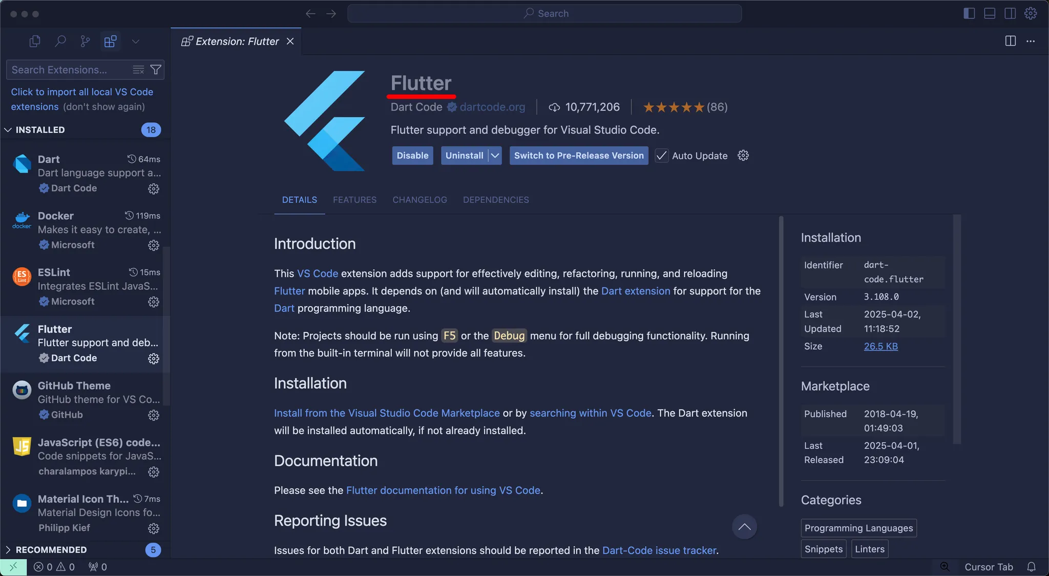 Flutter 앱 개발을 더 편하게 하기 위해 Dart 와 Flutter 익스텐션을 설치하겠습니다.