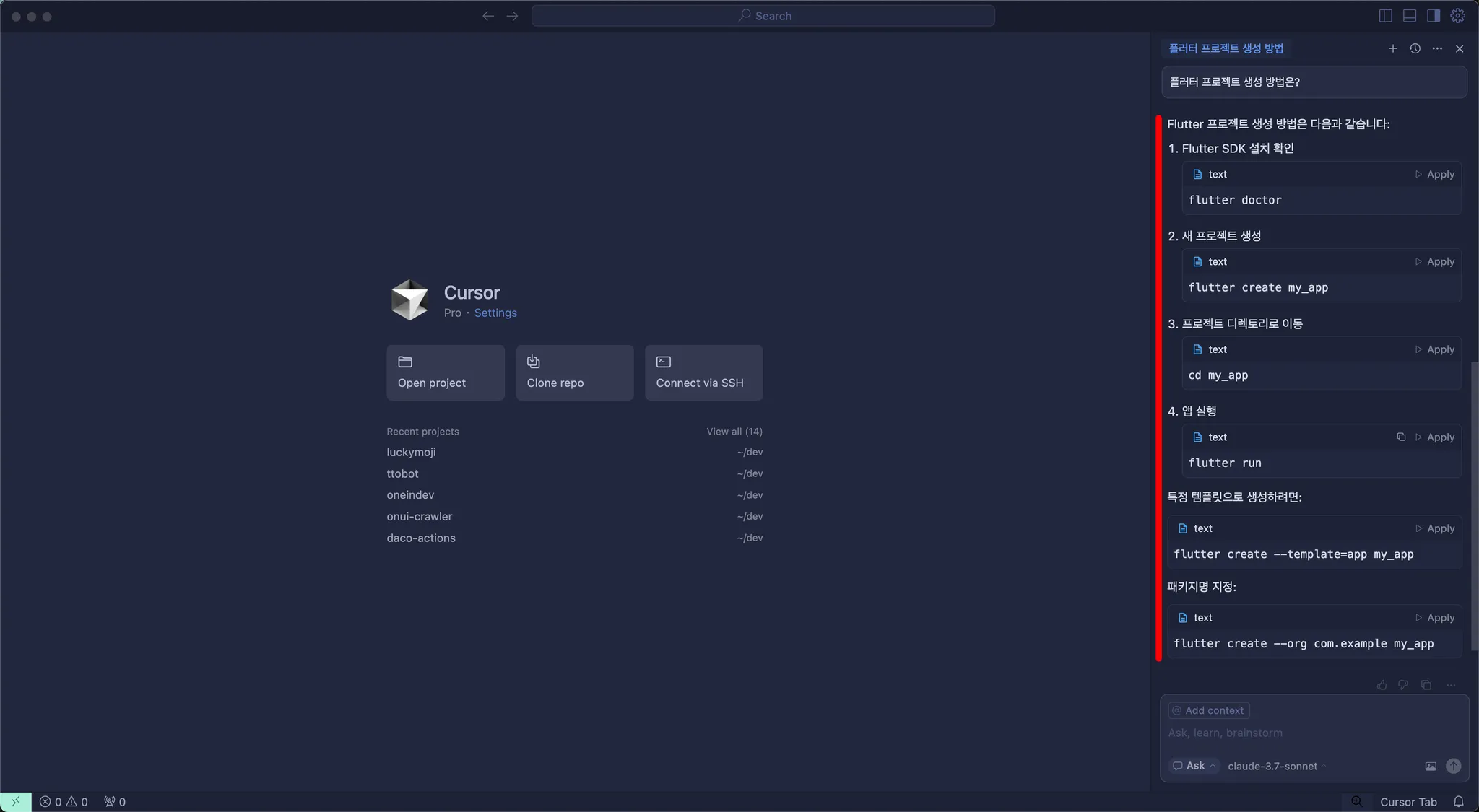 여기까지 Cursor 설치와 기본 사용법을 익혀보았습니다.