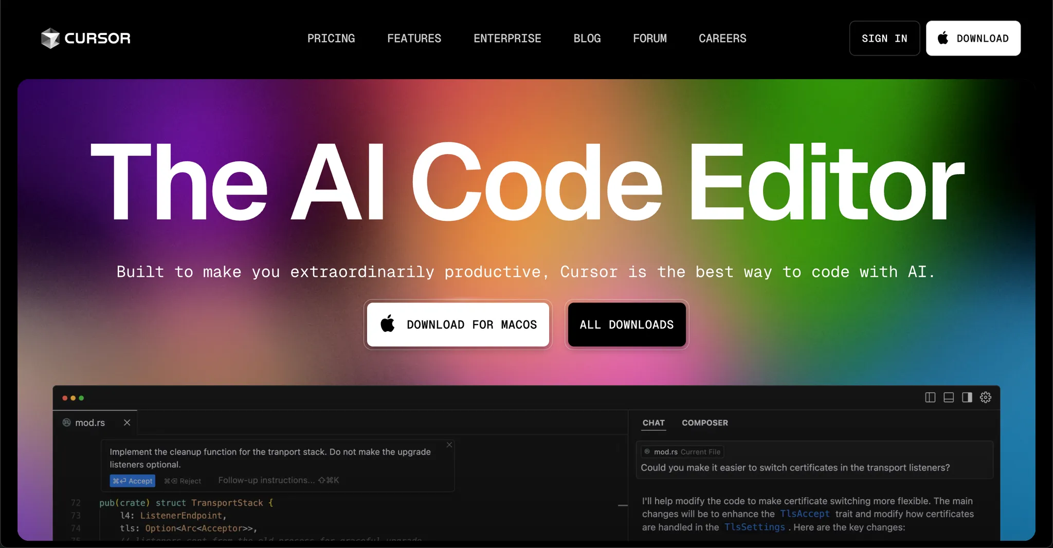 아래 Cursor 홈페이지에 접속해주세요.