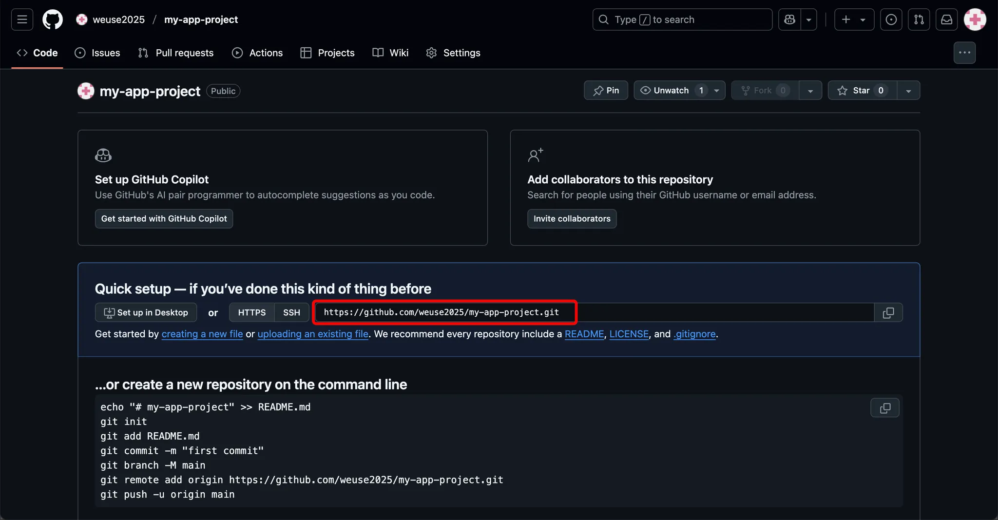 git remote add origin https://github.com/username/my-app-project.git