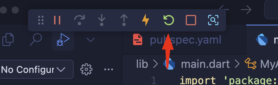만약 수정 사항이 반영되지 않는다면 위 이미지 좌측 상단에 있는 디버깅 패널에서 Restart 버튼을 눌러주세요.