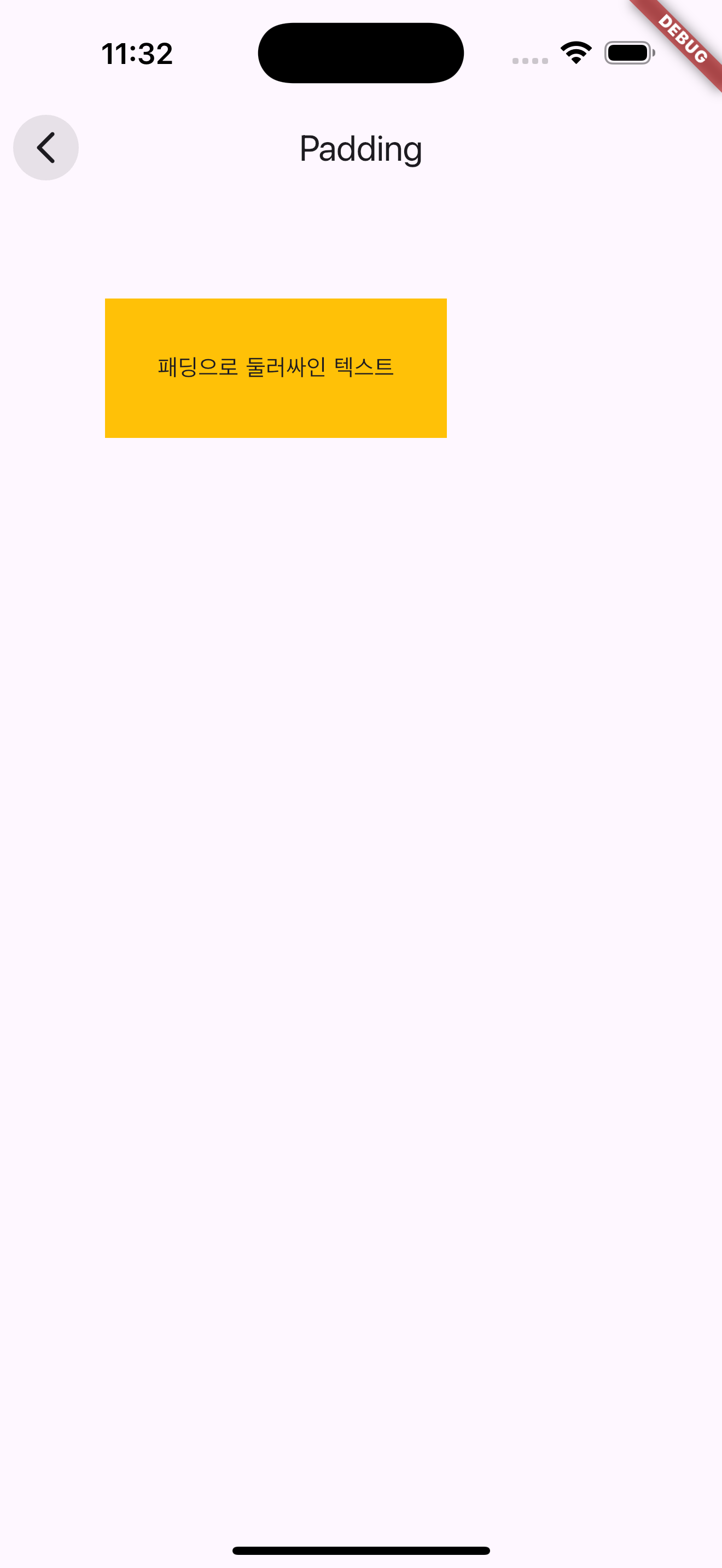 이렇듯 외부 여백은 Padding 위젯을, 내부 여백은 Container 속성의 padding을 사용하여 표현할 수 있습니다.