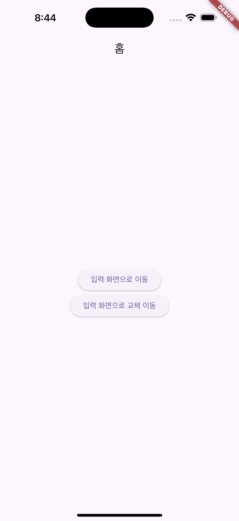 홈 화면에서 입력 화면으로 이동하는 것과 동일하게 Navigator.push( ... ) 와 Navigator.pushReplacement( ... ) 로 이동하도록 구현합니다.