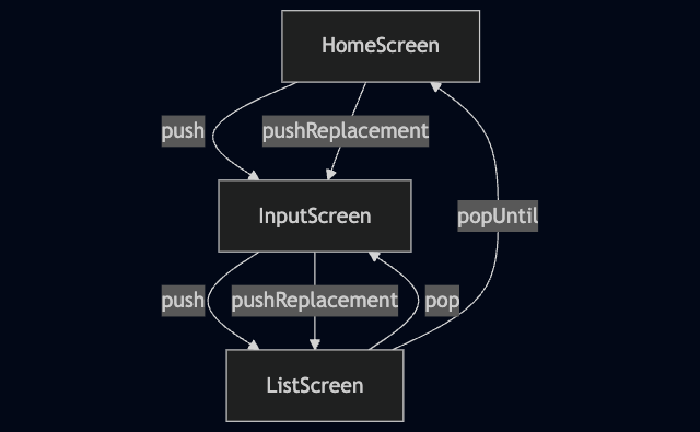HomeScreen과 InputScreen의 Navigator를 도식화하면 다음과 같습니다.