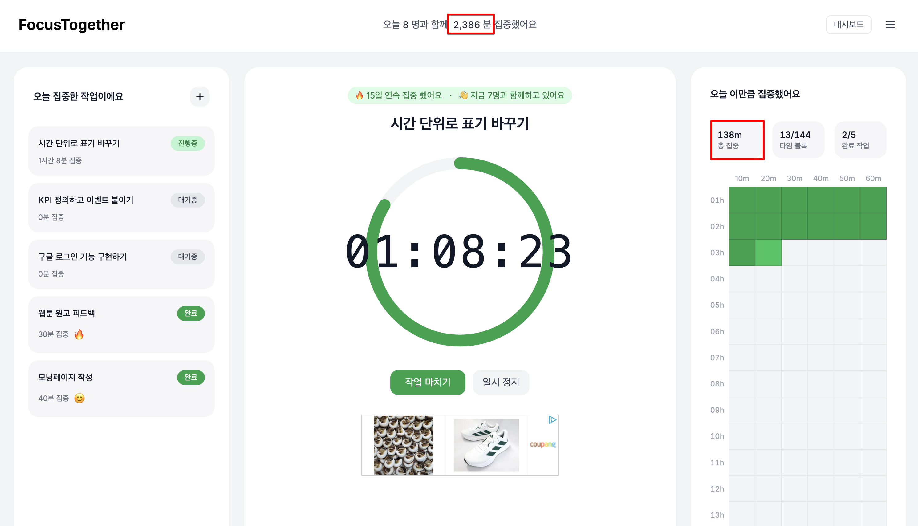 사실 나는 시간 계산, 즉 숫자 자체에 대해서는 큰 관심이 없었다. 이전 글에도 말했지만 내가 FocsuTogether를 통해서 얻고 싶었던 것은 시간 자체보다는 함께 한다는 연대감에 초점을 맞췄기 때문이다.