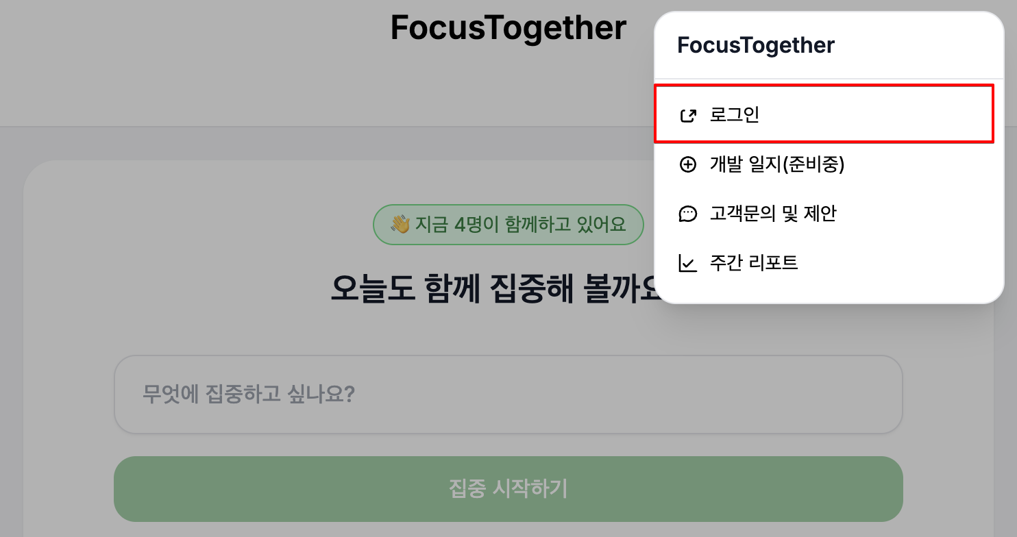지금까지의 FocusTogether는 회원가입/로그인 기능이 없었다. 집중하는 시간을 기록하고 관리하는데 개인 정보가 필요 없었기 때문이다. 대부분의 데이터는 브라우저 안에서 기록을 하고 있었고, 현재 몇 명이 이용하는지만 따로 서버에 보내어 수집하고 있었다.